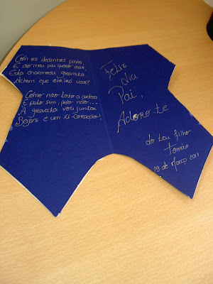 Estes foram os presentes oferecidos aos pais. Um pisa papéis feito com massa modelar com a impressão da mão dos nossos príncipes e princesas.E o respectivo postal.Esperamos que os papás tenham gostado do presente.
